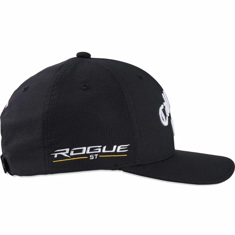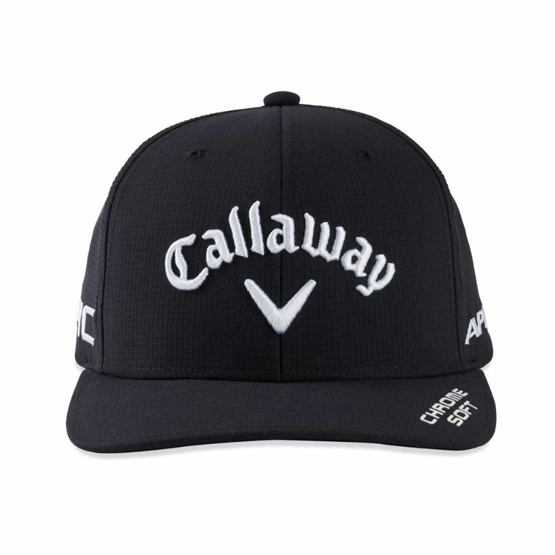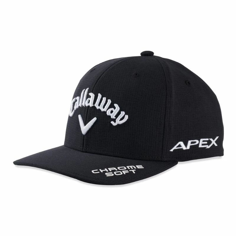 The Official 2022 Tour performance golf cap as worn on tour by Callaway Staff Players. Featuring embroidered Callaway Rogue ST, Apex, Chrome Soft & Odyssey putter tour logos.