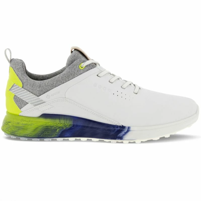 New upper design and innovative technology, the waterproof Ecco Mens S -Three Golf Shoes blend performance with modern style. Embossed and printed details contribute to the premium aesthetic of a men’s hybrid golf shoe that has been upgraded with X-tensa invisible technology for extra stability. This E-DTS outsole provides excellent traction while the Gore-TexTechnology supplies 100% waterproof protection. The Ecco zonal fluidform innovation creates three distinct zones of rigidity in the midsole, ensuring the ideal balance of cushioning and stability.