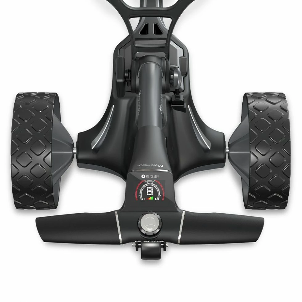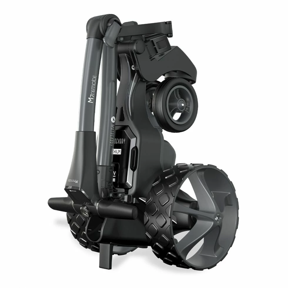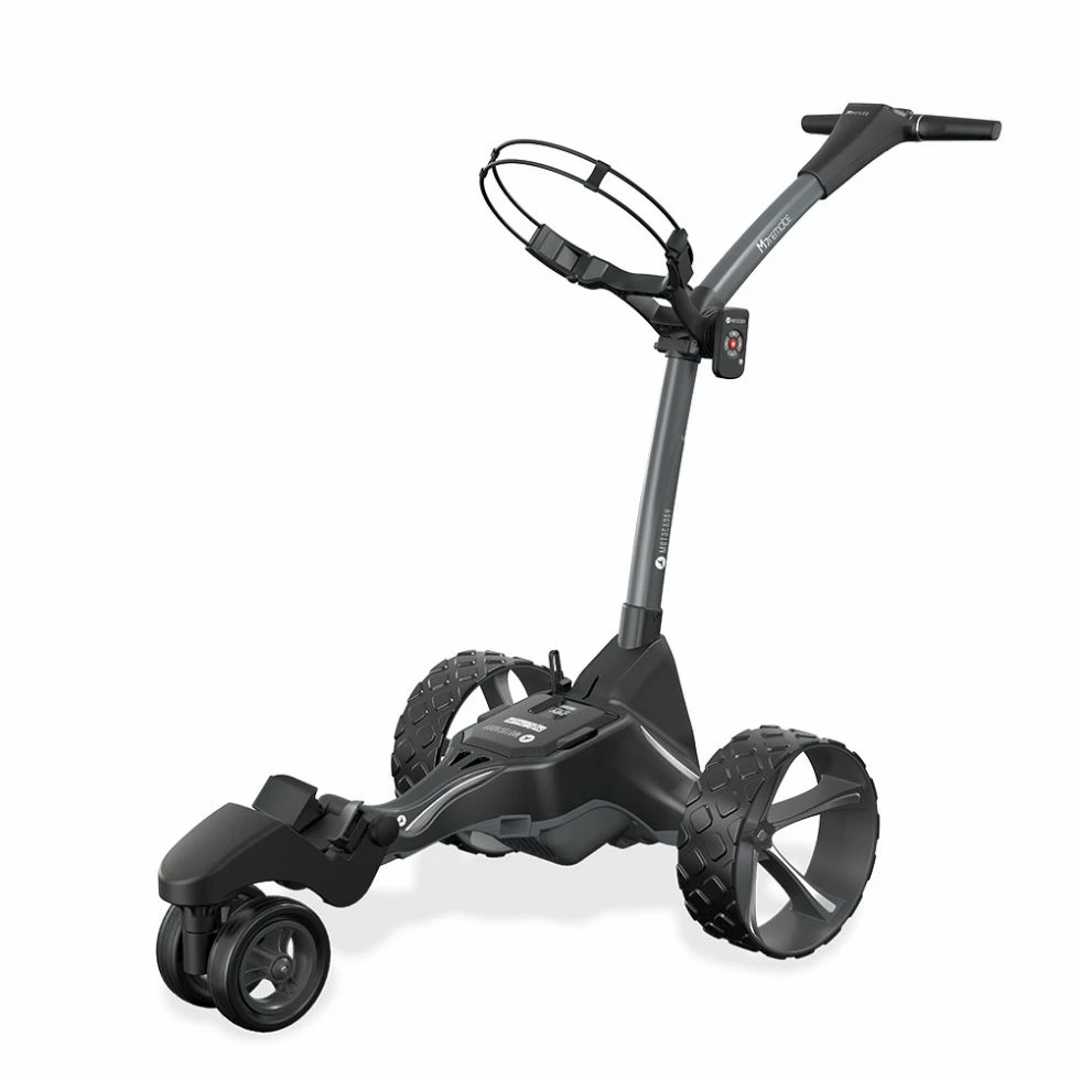 Winner of the My Golf Spy ‘Most Wanted’ award, the compact-folding M7 REMOTE features a rechargeable handset, removable anti-tip wheel, and automatic Downhill Control technology for the ultimate in responsive control.