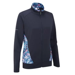The Oria ladies’ jacket from Ping is a classy and sophisticated golf garment with eye-catching detailing to dazzle the opposition. There are 3 colours to choose from, each one showing a different print design in the back panel and collar. The printed back panel reaches out slightly to the front at the bottom to give a trendy and modern look.